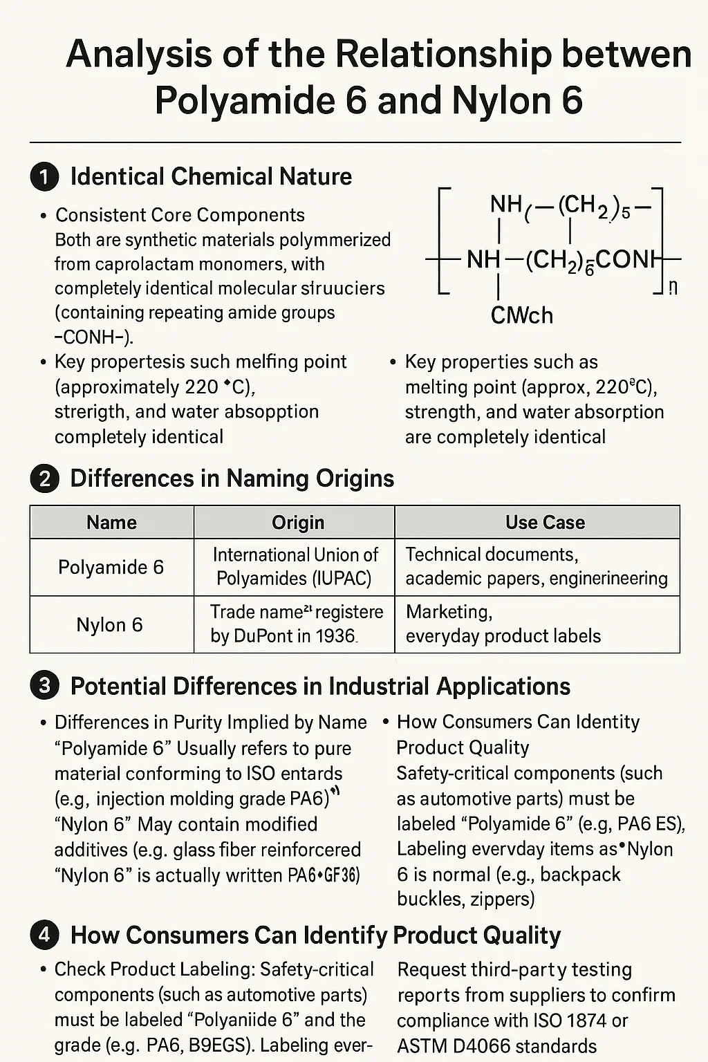 • 일관된 핵심 구성요소: 둘 다 카프로락탐 단량체로부터 중합된 합성 물질이며 완전히 동일한 분자 구조(반복 아미드 그룹 -CONH- 포함)를 가지고 있습니다.