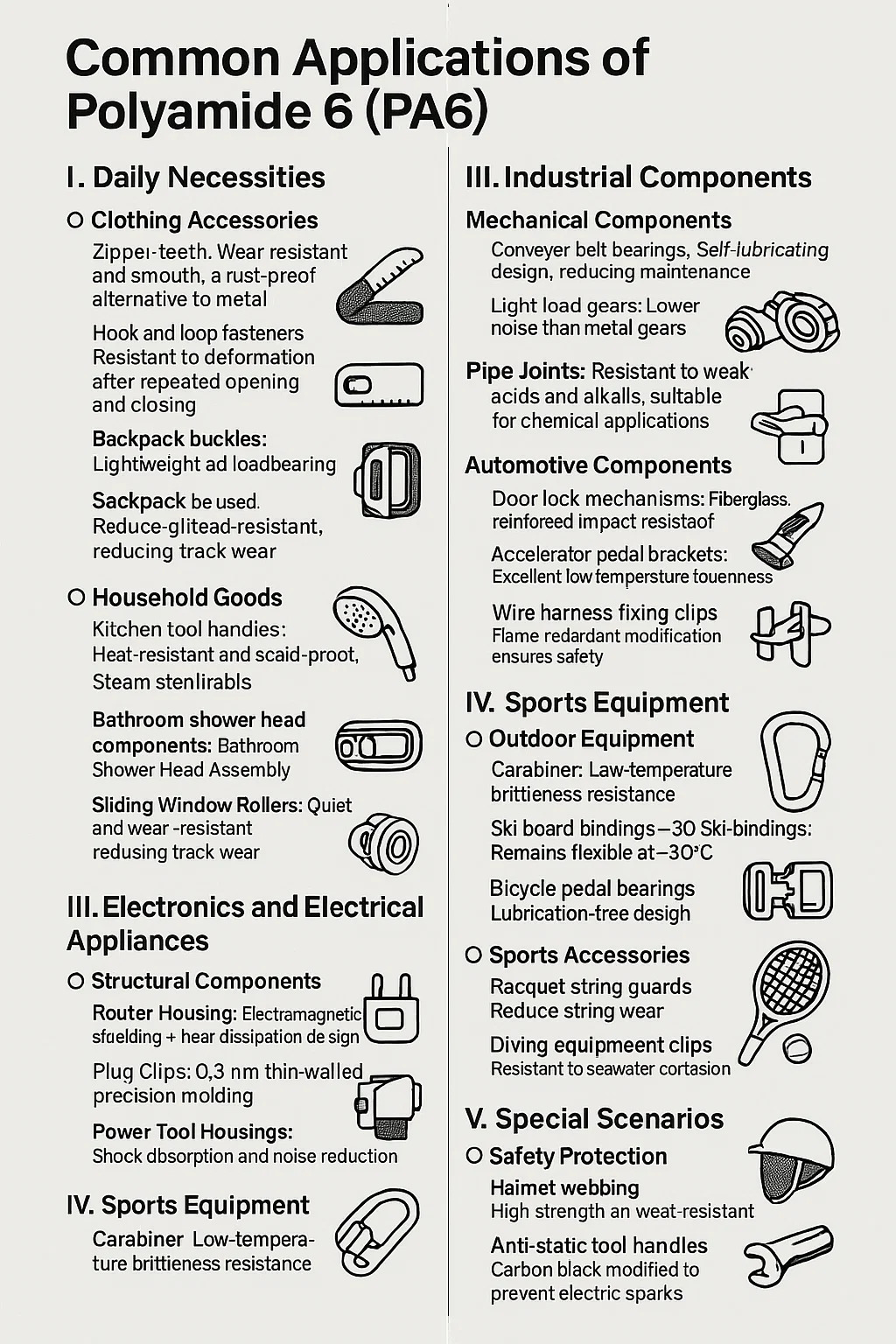 다음은 일반적인 응용 프로그램에 대한 소개입니다. 폴리아미드 6 (PA6):